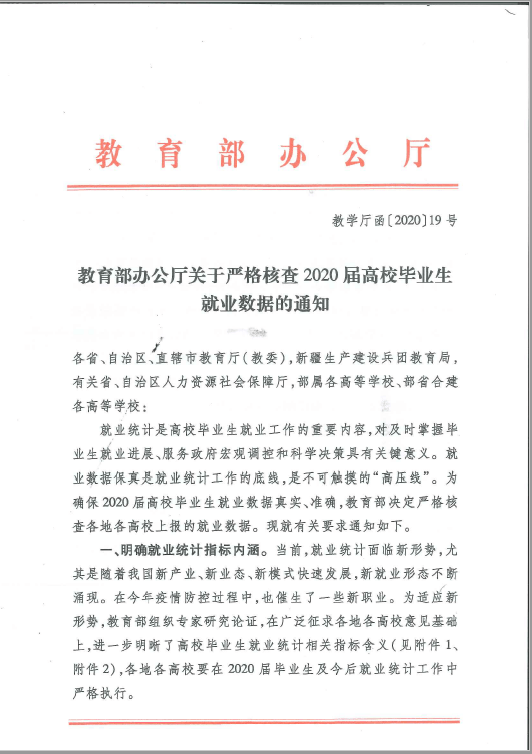 近日,多個地方教育主管部門和高校網站公布了《教育部辦公廳關于嚴格核查2020屆高校畢業(yè)生就業(yè)數(shù)據(jù)的通知》,明晰了高校畢業(yè)生就業(yè)統(tǒng)計指標。