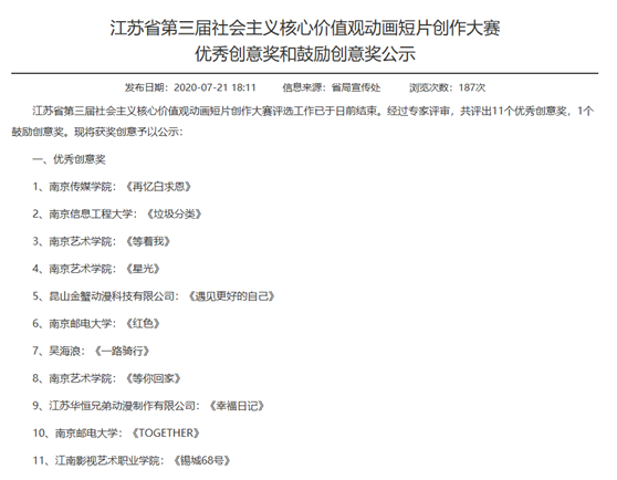 江蘇這群大學(xué)生創(chuàng)意動畫短片獲省級大獎