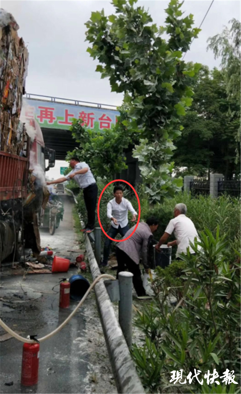 此時,正在家門口打掃衛(wèi)生的江蘇海洋大學化學工程學院在校大學生王維聽到喊聲,急忙放下手中掃帚,跑進廚房提起水桶就朝離家200米遠著火的地方趕去。