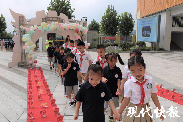 (記者 舒越/文)告別夏日蟬鳴,9月1日,萌娃們背起書包上學啦。穿上七彩文化衫、登上“和諧文明號列車”、跟著小哥哥小姐姐“打卡”校園......一起看看南京各大小學如何花式迎接“萌新”吧!