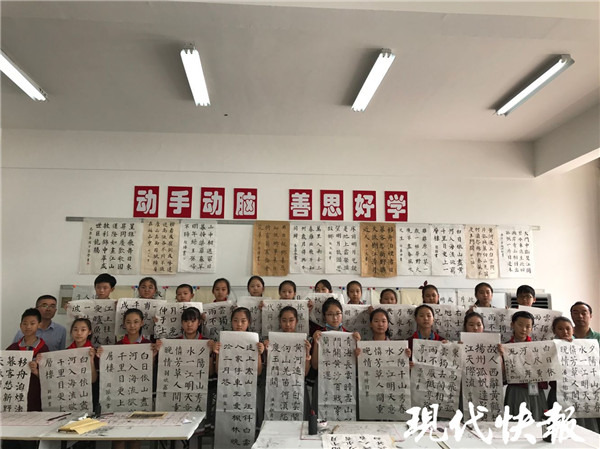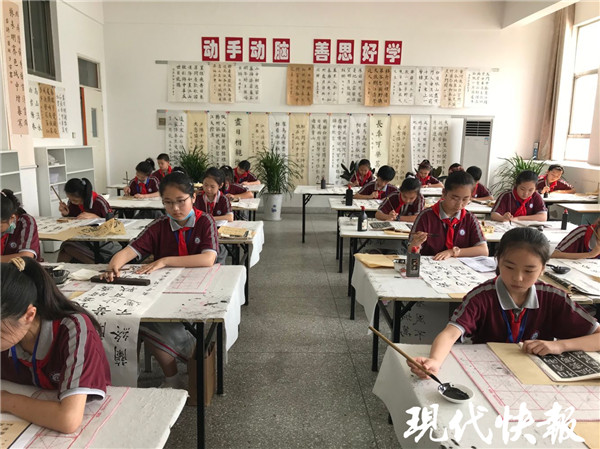 “書法教學是語文教學的重要組成部分。我校一直把書法社團作為特色社團來建設,每年從三年級學生中挑選出部分精兵強將,充分利用中午寫字課和晚上課后服務的時間,由專人教學輔導。”響水縣銀河路小學教務處主任嵇建軍說。