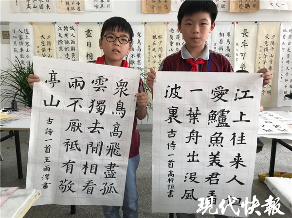 周子睿與呂思穎是同班同學,她的字也非常優(yōu)秀,曾獲得過省市比賽一等獎。“我是三年級才開始練習寫字的,那時媽媽說我坐不住,學習和寫作業(yè)都不專注。”經過幾年的鍛煉,周子睿說,她現(xiàn)在做任何事情都有耐心和定性。