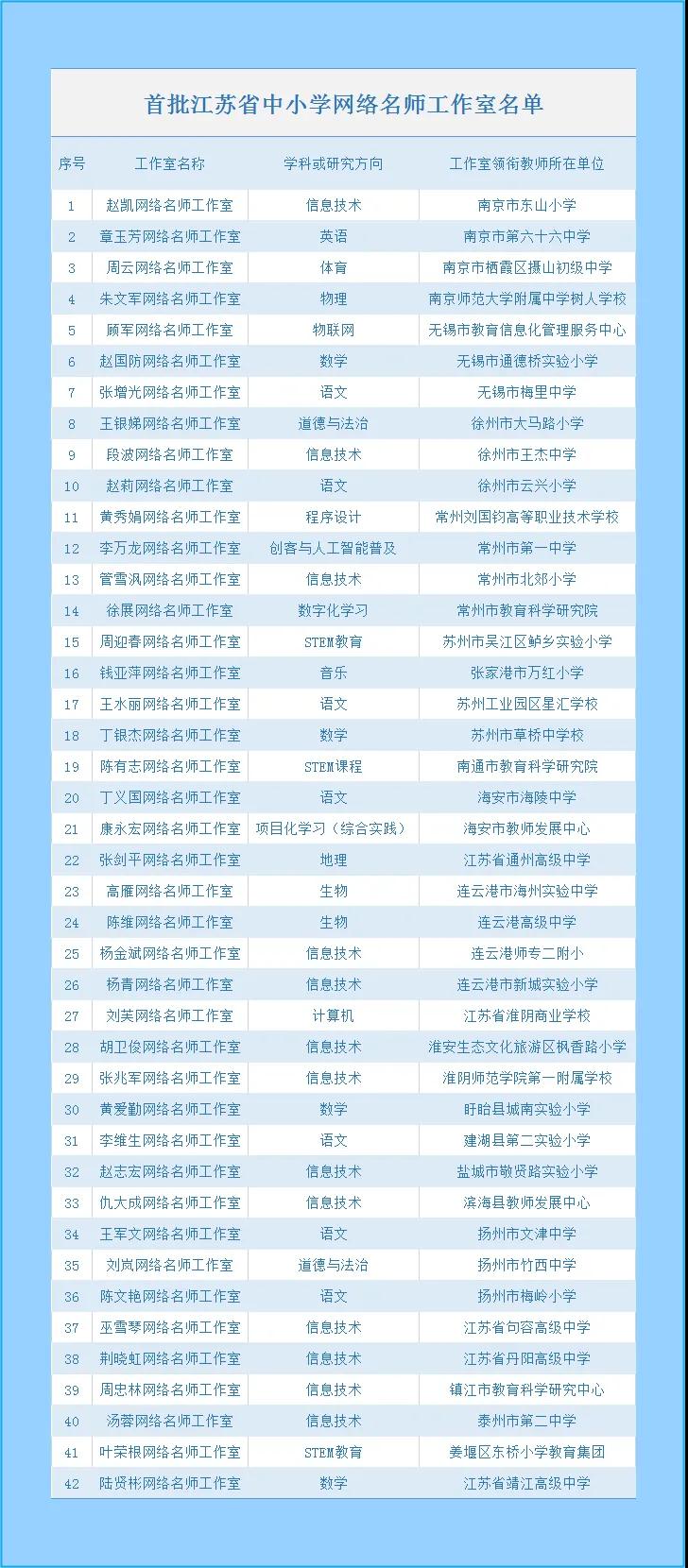 首批江蘇省中小學(xué)網(wǎng)絡(luò)名師工作室名單來了!