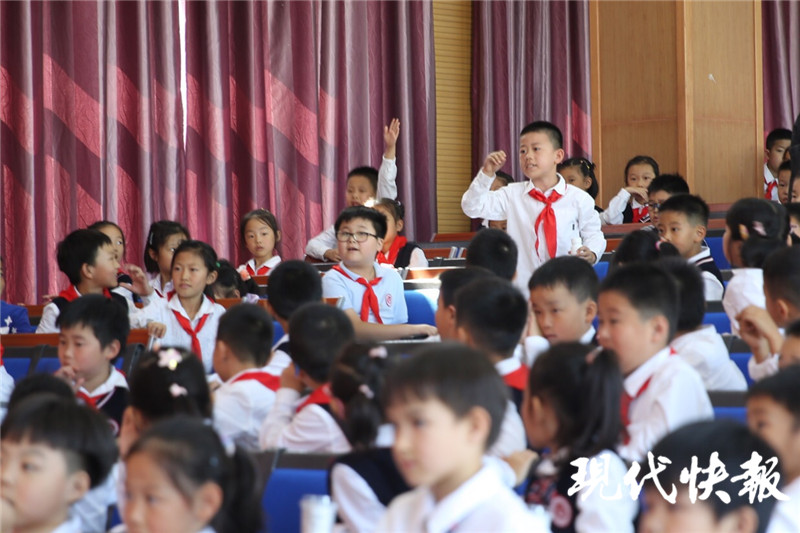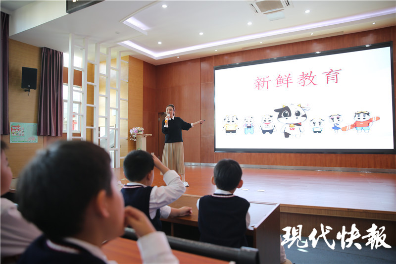 (記者 舒越/文 王玉秋晨/攝)10月9日,國(guó)慶8天假期結(jié)束后的第一天,位于明城墻腳下的南京市后標(biāo)營(yíng)小學(xué)校園里十分熱鬧。“快看!秋晨哥哥來(lái)了!”“原來(lái)關(guān)于牛奶的知識(shí)有這么多呀……”當(dāng)天中午,現(xiàn)代快報(bào)小記者秋晨哥哥來(lái)到學(xué)校招新,同時(shí)“新鮮課堂”的小蔡老師也帶來(lái)了一場(chǎng)關(guān)于牛奶和飲食的小講座,一二年級(jí)近300名萌娃積極互動(dòng),還get了不少飲食小知識(shí)。