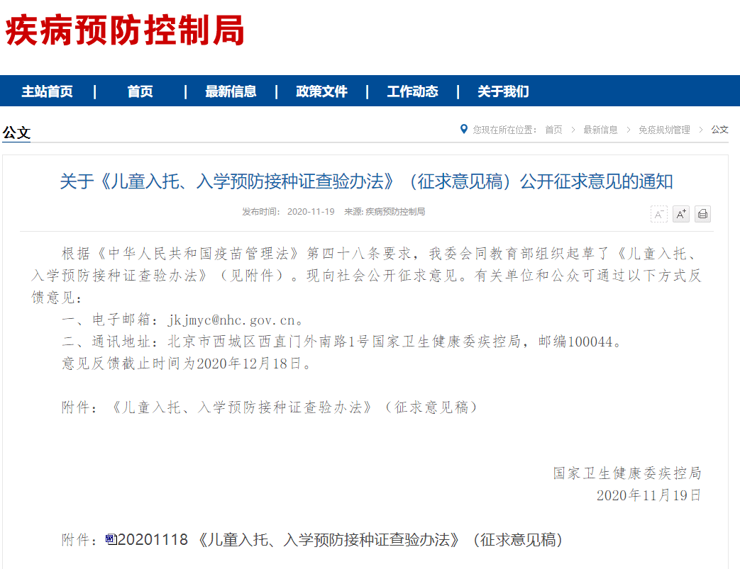 為加強(qiáng)托育機(jī)構(gòu)、幼兒園和學(xué)校傳染病防控,提高適齡兒童國家免疫規(guī)劃疫苗接種率,國家衛(wèi)健委疾控局最新發(fā)布了《兒童入托、入學(xué)預(yù)防接種證查驗(yàn)辦法》(征求意見稿),其中明確規(guī)定,托育機(jī)構(gòu)、幼兒園和學(xué)校應(yīng)當(dāng)將預(yù)防接種證查驗(yàn)工作納入兒童入托、入學(xué)報(bào)名程序,預(yù)防接種證查驗(yàn)相關(guān)資料應(yīng)納入學(xué)生健康檔案。