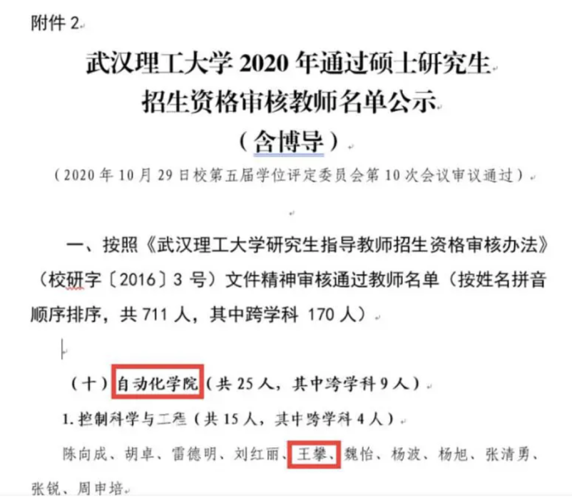 聯(lián)名信寫道,身為關(guān)心校園發(fā)展的熱心武理學(xué)子,我們呼吁永久禁止已故學(xué)子陶崇園導(dǎo)師、武漢理工大學(xué)自動化學(xué)院教師王攀教師的招研資格。2018年3月26日,我校研究生陶崇園從其宿舍樓頂墜樓身亡,此事引起社會熱議。2018年4月8日,我校發(fā)布通報(bào)稱,王攀存在與學(xué)生認(rèn)義子關(guān)系等與科研無關(guān)的行為,以及指導(dǎo)學(xué)生升學(xué)就業(yè)過程中方式方法欠妥等情況。據(jù)此調(diào)查結(jié)果,校方停止了王攀的研究生招生資格,對其作出了停職處理。然而,時(shí)隔兩年,校方卻一改前態(tài),做出令眾多師生愕然的決定:2020年11月20日,武漢理工大學(xué)研究生院官網(wǎng)發(fā)布的《關(guān)于學(xué)校2020年通過博士碩士研究生招生資格審核的教師名單公示》中,王攀之名赫然在列。