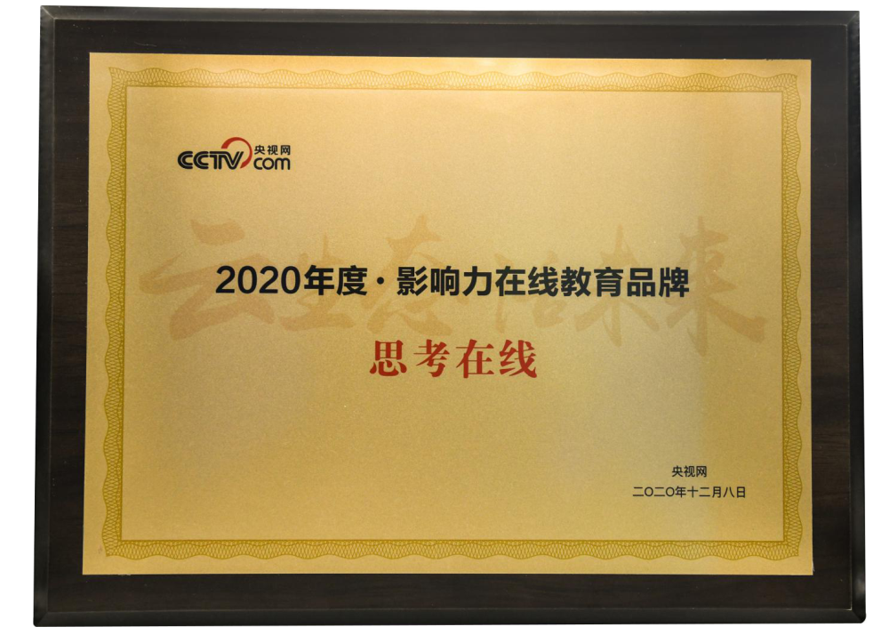 思考在線獲頒央視網(wǎng)“2020年度影響力在線教育品牌”獎(jiǎng)項(xiàng)