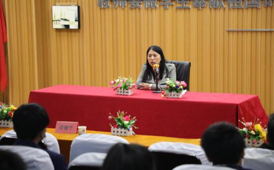 講座接近尾聲,市領導上臺做了總結性發(fā)言,她指出,通過此次“技能大師進校園宣講”活動,為廣大師生提供了與工匠大師面對面交流的機會,讓學生對敬業(yè)、奉獻的勞動精神和精益求精的工匠精神有了全新的理解,對學校進一步提高人才培養(yǎng)質量具有重要意義。