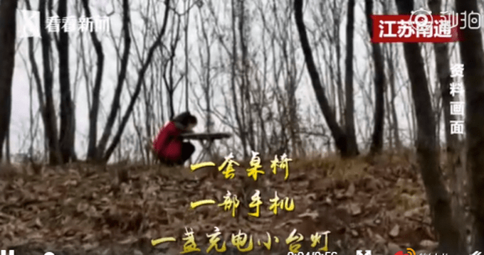 征求了班上家長的意見,老師決定將網(wǎng)課安排在晚上6點半到9點半。母女倆要提前半小時,從家里出發(fā)搬上桌椅抱著書本和臺燈爬到屋后的山頂上。一套桌椅、一部手機、一盞充電小臺燈,每天晚上,母女二人在山頂上一坐便是三個小時。這幾天,晚上有些小雨,寧女士就在學(xué)習(xí)的地方搭了一個簡易的雨棚。