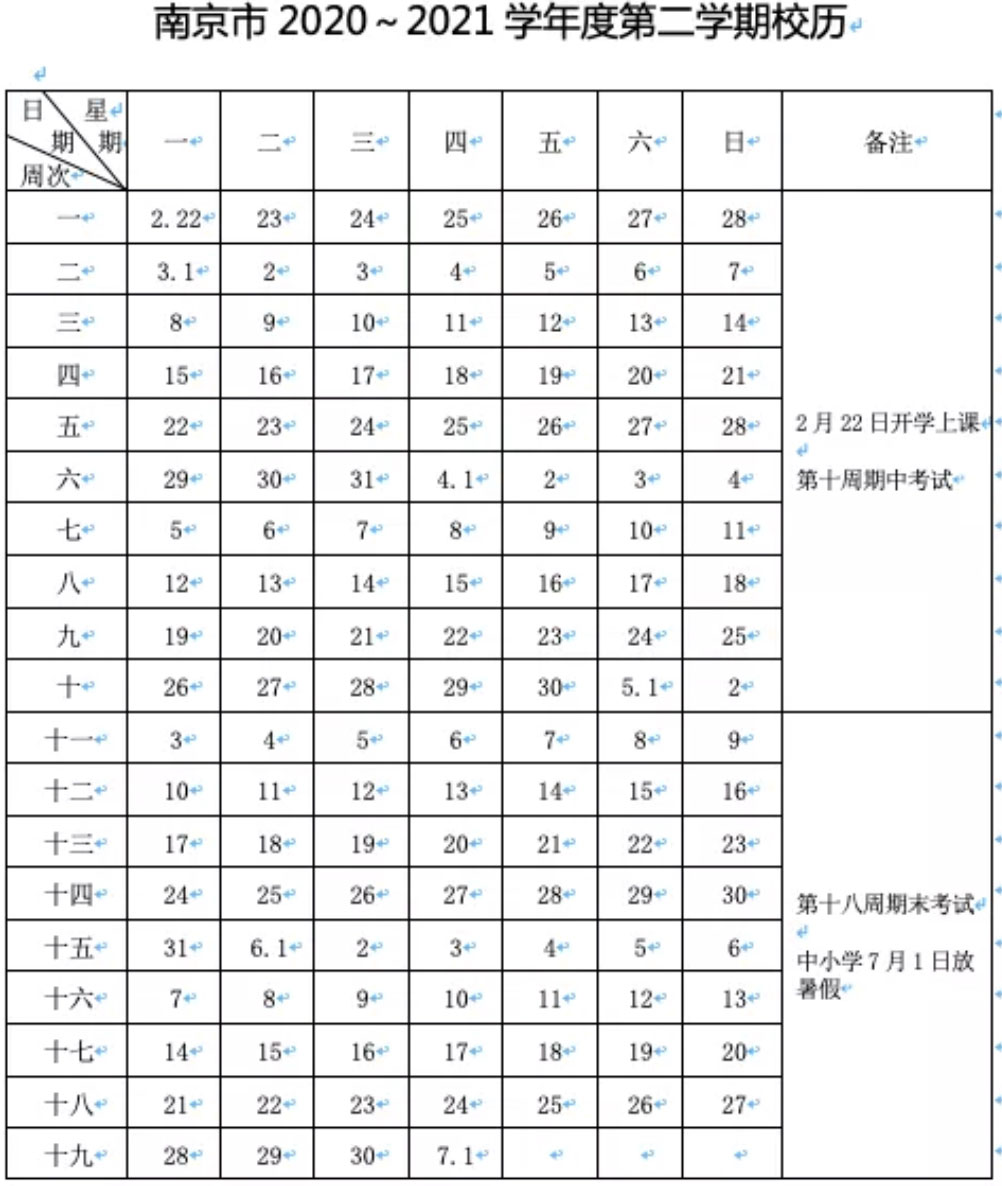(記者 黃艷 舒越)孩子們,寒假已余額不足啦。根據(jù)江蘇省教育廳發(fā)布的《關(guān)于做好2021年中小學(xué)幼兒園寒假工作的通知》,全省中小學(xué)幼兒園將于2月22日開學(xué)上課。2月19日,現(xiàn)代快報(bào)記者了解到,南京中小學(xué)新學(xué)期校歷出爐:2月22日開學(xué)上課,第十周期中考試,第十八周期末考試,中小學(xué)7月1日放暑假。
