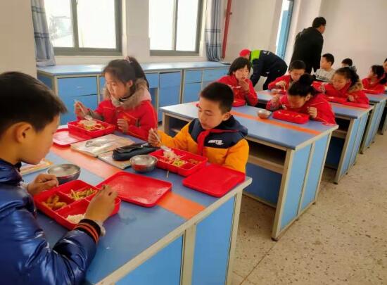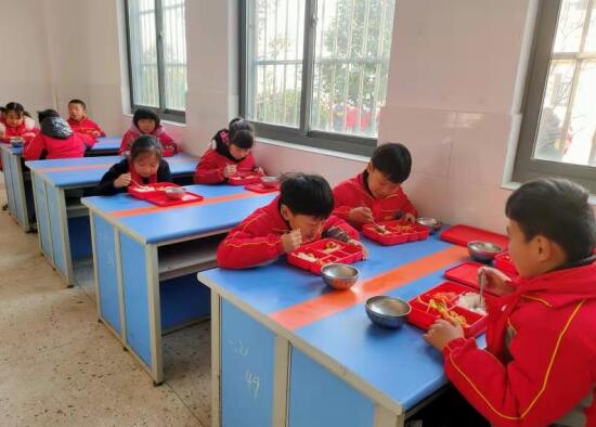 開學(xué)初,鹽城市濱??h界牌鎮(zhèn)中心小學(xué)的校領(lǐng)導(dǎo)了解到,很多家長因在外地過年,擔(dān)心自己的孩子上學(xué)吃飯難問題。學(xué)校校委會隨即研究決定,在學(xué)校雅思樓上設(shè)立兩個教室作為留守兒童臨時用餐點(diǎn)(學(xué)校的餐廳正在建設(shè)中)。增設(shè)了35張小飯桌,供70名留守兒童中午就餐使用。為了讓孩子們吃上放心的飯菜,學(xué)校與縣成業(yè)餐飲公司達(dá)成協(xié)議,每天中午準(zhǔn)時配送飯菜,確保天天不同菜,營養(yǎng)足夠豐富。
