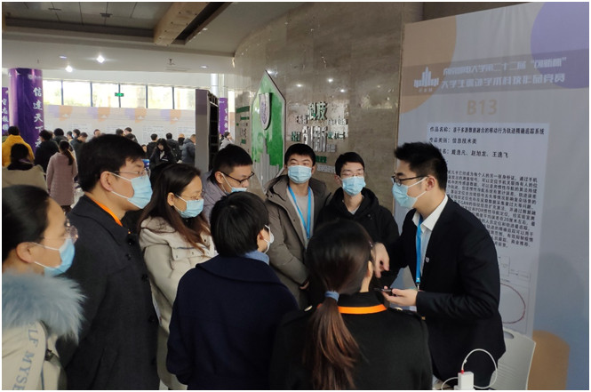 △戴逸凡團(tuán)隊(duì)向南郵同學(xué)介紹他的創(chuàng)新項(xiàng)目