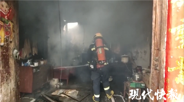 與此同時(shí),根據(jù)這名小學(xué)生提供的具體位置,南通市消防救援支隊(duì)海安市黃河路專(zhuān)職消防救援站的消防人員立即趕往現(xiàn)場(chǎng)處置。從視頻畫(huà)面中可以看到,房屋的結(jié)構(gòu)為磚瓦房,房梁和墻面已經(jīng)過(guò)火,客廳內(nèi)沙發(fā)正劇烈燃燒,滾滾濃煙撲面而來(lái)。消防人員正舉著水槍?zhuān)瑢?duì)準(zhǔn)起火點(diǎn)進(jìn)行滅火。經(jīng)過(guò)消防人員5分多鐘的連續(xù)滅火,火勢(shì)逐漸被控制。為確保屋內(nèi)物品不再發(fā)生陰燃現(xiàn)象,消防人員進(jìn)一步排除隱患。