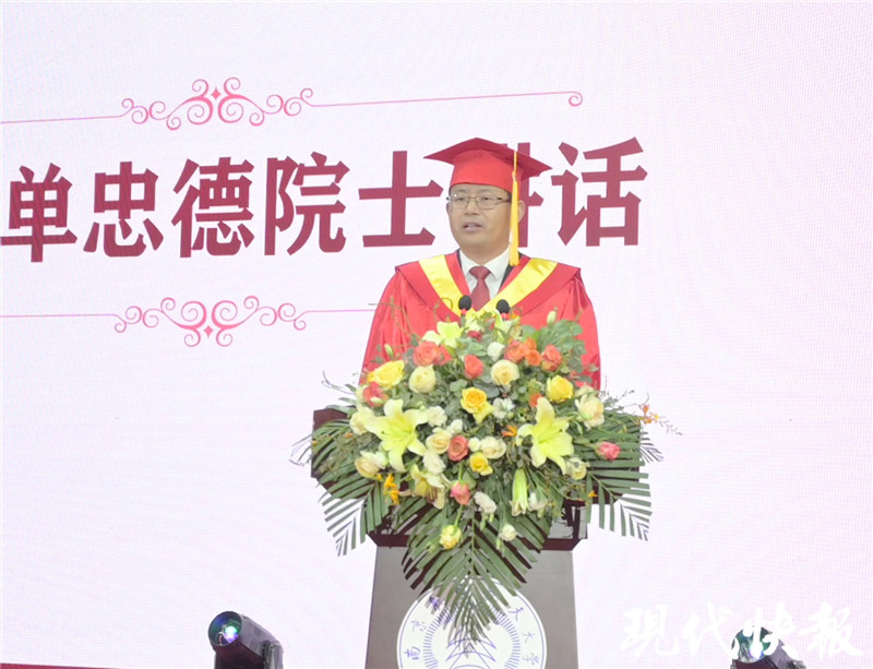 中國工程院院士、南航校長單忠德在致辭中與畢業(yè)生分享了三點(diǎn)體會:他以長空靶機(jī)供靶團(tuán)隊扎根戈壁、刻苦攻關(guān)的科研經(jīng)歷,勉勵大家心有所信,方能行遠(yuǎn),在立足新發(fā)展階段中胸懷大愛,勇立潮頭;以南航86級校友、北斗三號衛(wèi)星系統(tǒng)總設(shè)計師陳忠貴及多位致力于航空航天強(qiáng)國事業(yè)的校友為例,鼓勵大家心有所向,方能行深,在貫徹新發(fā)展理念中知行合一,逐夢遠(yuǎn)航;以南航多名院士為代表的南航人、“互聯(lián)網(wǎng)+”創(chuàng)新創(chuàng)業(yè)大賽獲獎團(tuán)隊、車輛智能線控系統(tǒng)研究生“五好”導(dǎo)學(xué)團(tuán)隊的故事,鼓勵大家心有所畏,方能行穩(wěn),在構(gòu)建新發(fā)展格局中精益求精,創(chuàng)新賦能。
