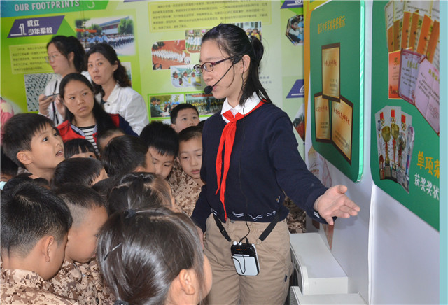 海韻樓、蔚藍(lán)跑道、海防館……海英小學(xué)校園里海味十足。海英小學(xué)校長劉羽告訴記者,海英小學(xué)是1960年在劉伯承元帥親自關(guān)心下為海軍學(xué)院(現(xiàn)海軍指揮學(xué)院)的子弟就學(xué)而興建的,校名“海英”包含著“海軍英雄”的寓意。“認(rèn)識海洋、親近海軍、了解海防”為內(nèi)容的“三海”教育是學(xué)校的特色文化。每年11月都要舉辦“三海”文化節(jié)。2017年舉辦了海洋時裝秀,2018年和2019年分別開展了“海防大篷車”和“我用畫筆畫國防”活動。軍訓(xùn)展演、國防進(jìn)校園等年年有。被譽(yù)為“海天驕子”的海軍優(yōu)秀飛行員艦長柏耀平,在海院學(xué)習(xí)期間曾擔(dān)任學(xué)校中隊(duì)校外輔導(dǎo)員。學(xué)校經(jīng)常組織小學(xué)生走訪老英雄、老前輩,聽海軍叔叔講故事,努力傳承紅色基因。學(xué)校還獲評南京市創(chuàng)建全國雙擁模范城有功單位等。