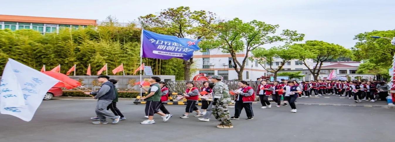 早上六點,在昂揚的歌聲中,橫山橋高中高二年級全體師生在學(xué)校操場集結(jié),一面面旗幟書寫著鼓舞人心的標語:博學(xué)篤行、自強不息、乘風(fēng)破浪、勇往直前。劉金波副校長主持了出征儀式,寧本冉校長授旗并宣布活動開始。