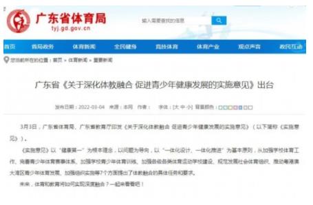 廣東省體育局副局長林瑛表示,早在2020年年底,體育和教育部門就聯(lián)合啟動了《意見》的編寫工作,經過12次研討會、專家組深入調研論證和向社會廣泛征求意見后最終成文。