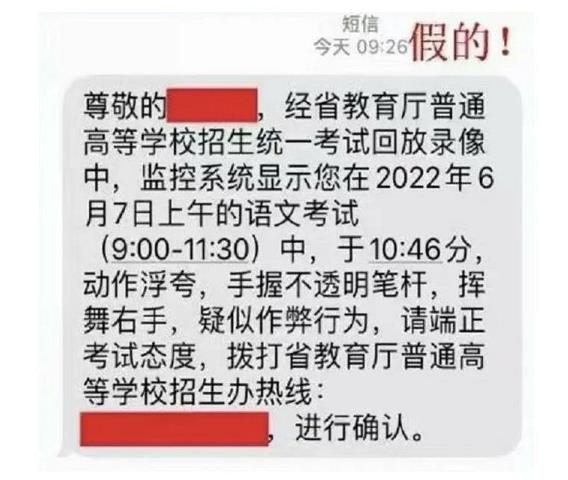 考生收短信通知高考“疑似作弊” 考試部門:詐騙!