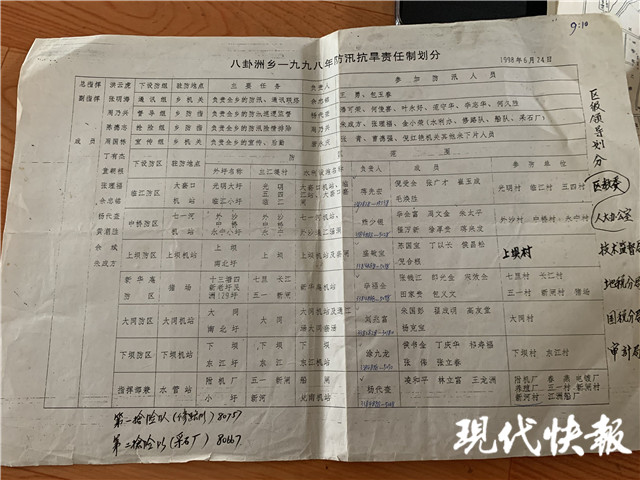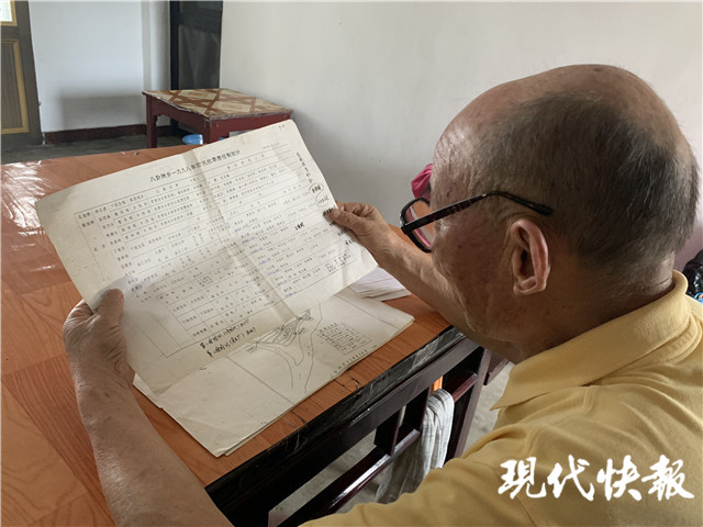 泛黃的紙張上,記錄著1998年6月24日至9月24日每一天的水位……當78歲老黨員束祖正打開當年的防汛筆記,南京八卦洲外沙村干部們都嘆為觀止。7月21日,現(xiàn)代快報記者來到束祖正老人家中,聽他講述八卦洲的防汛故事。