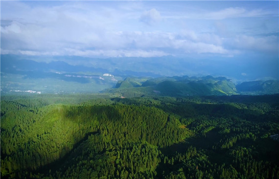 舉目遠望,綠色的大森林像海洋一樣連成一片,樹木長得郁郁蔥蔥,散發(fā)著舒心涼爽,陽光像一縷縷金色的細沙,穿過層層疊疊的枝葉,灑落在草地上。林中的鳥兒歡快地飛翔著、鳴叫著,伴著潺潺的流水聲在微風中久久地回蕩著,這迷人的景色多么令人心醉啊!
