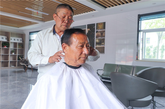 在黨群服務驛站,不僅能辦理金融業(yè)務,還能享受更多便民服務。上午10點,80歲的徐義英奶奶走進驛站的免費理發(fā)屋,“師傅,麻煩幫我理個發(fā)。”“好嘞!您小心腳下,坐好了。”只見理發(fā)師傅涂道喜熟練地為徐奶奶圍上圍布開始理發(fā),隨著脆耳的“咔咔”聲,不一會兒徐奶奶的頭發(fā)變得清爽起來。