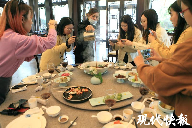 △“網(wǎng)紅”在拍攝揚(yáng)州美食