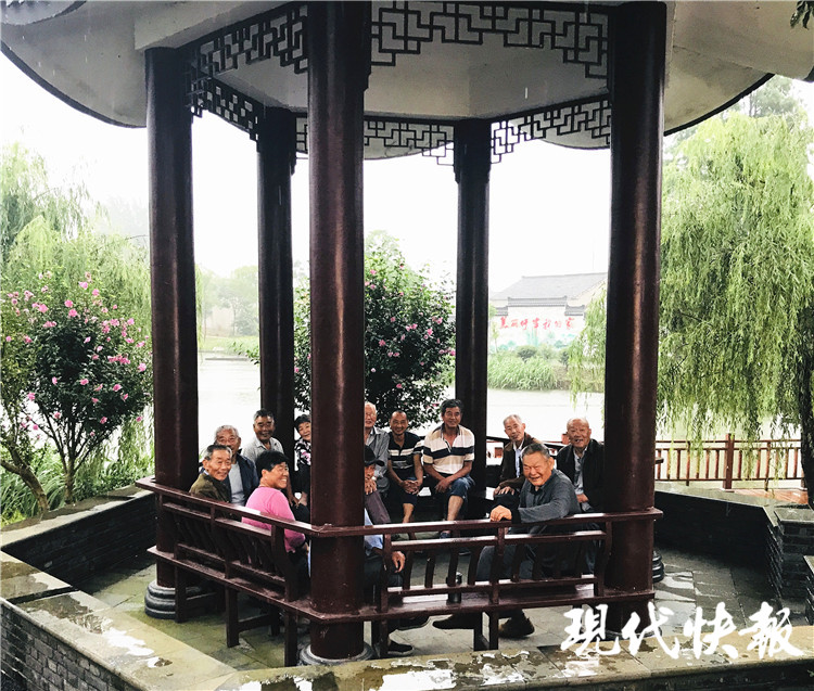 7月22日下午,村里圩岸橋下,樹林中兩位村民正在下棋,一旁的幾個老太太已經(jīng)搬出了音響,為晚上的廣場舞預熱。