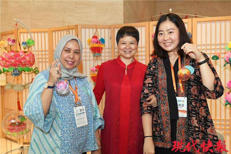 走進(jìn)南博非遺展示區(qū),一盞盞五彩斑斕、小巧精致的荷花燈,立即吸引了國際友人的目光。制作花燈總共需要62道工序,秦淮燈彩國家級(jí)非物質(zhì)文化遺產(chǎn)代表性傳承人顧業(yè)亮如數(shù)家珍。