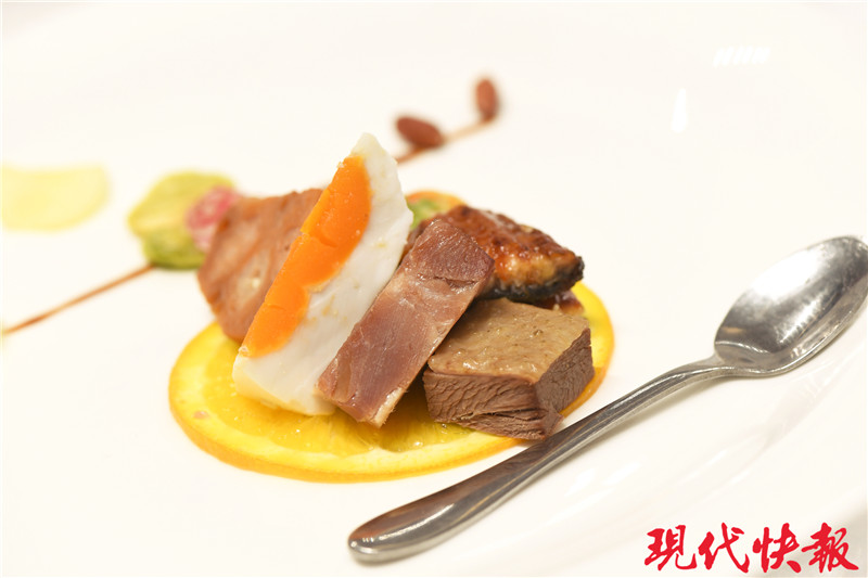 “這次宴會(huì)是符合外國人習(xí)慣的冷餐會(huì),所以我們?cè)诤芏嗖穗鹊某尸F(xiàn)方式上做了相應(yīng)的調(diào)整,都是‘一口食’。我們盡可能在這樣的氛圍里,呈現(xiàn)最原汁原味的淮揚(yáng)菜。”江蘇旅游職業(yè)學(xué)院副教授、中國烹飪大師李增主要負(fù)責(zé)這次冷餐會(huì)的宴會(huì)設(shè)計(jì),他告訴現(xiàn)代快報(bào)記者,淮揚(yáng)菜是文人菜,最講精細(xì),“從選材到營養(yǎng)搭配,再到最終的質(zhì)感和口味,整個(gè)團(tuán)隊(duì)磨了一個(gè)月的時(shí)間。”這個(gè)團(tuán)隊(duì)可都不是普通人,而是由20個(gè)揚(yáng)州當(dāng)?shù)刂频甑膹N師長組成。當(dāng)天,他們都帶著自己的拿手絕活來到餐會(huì)現(xiàn)場,每人負(fù)責(zé)一道菜。