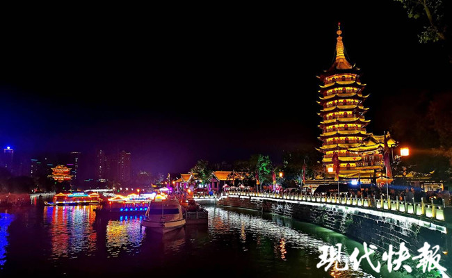 啟動(dòng)儀式上,曼妙的模特們身著蘇繡、云錦、宋錦、扎染、藍(lán)印花等江蘇省非遺染織繡,演繹了一場(chǎng)無與倫比的時(shí)尚服飾燈光秀;來自浙江、安徽的傳統(tǒng)民歌和江蘇省戲曲舞蹈等項(xiàng)目同臺(tái)獻(xiàn)演。一時(shí)間,淮安里運(yùn)河中的中洲島島內(nèi)島外燈光互映,陸地岸畔游人如織,游船畫舫碧波競(jìng)流,動(dòng)靜之間,古老運(yùn)河呈現(xiàn)別樣風(fēng)情。