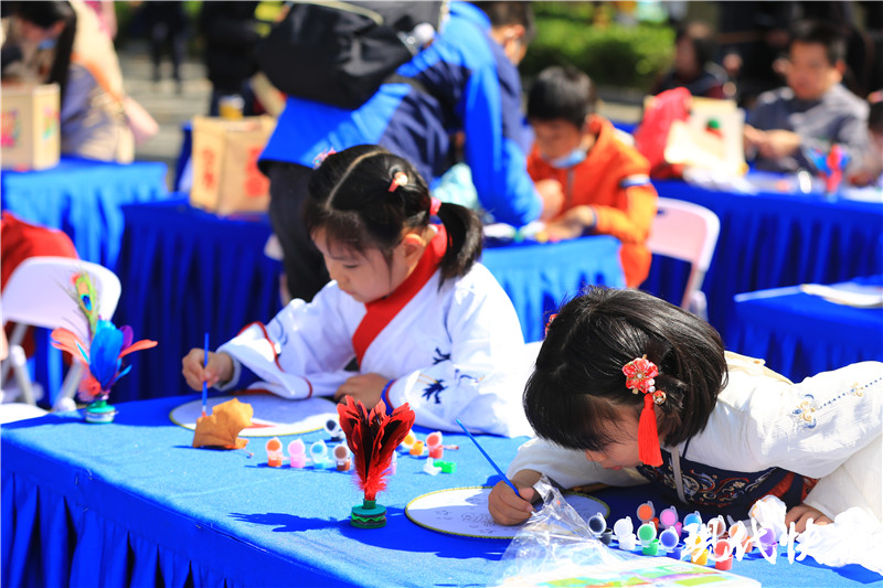現(xiàn)代快報(bào)記者看到,上午10點(diǎn),現(xiàn)場(chǎng)便吸引了眾多對(duì)中國(guó)傳統(tǒng)文化感興趣的市民及游客,不少小朋友對(duì)國(guó)風(fēng)展現(xiàn)出濃厚的興趣,并積極參與到活動(dòng)中來。在國(guó)學(xué)課堂環(huán)節(jié),主持人現(xiàn)場(chǎng)提問關(guān)于國(guó)風(fēng)的課外知識(shí)。小朋友們踴躍舉手作答,不僅能準(zhǔn)確說出答案,還能講出其中典故。在傳統(tǒng)國(guó)韻游戲環(huán)節(jié),小朋友們總能玩出新花樣,創(chuàng)意十足!