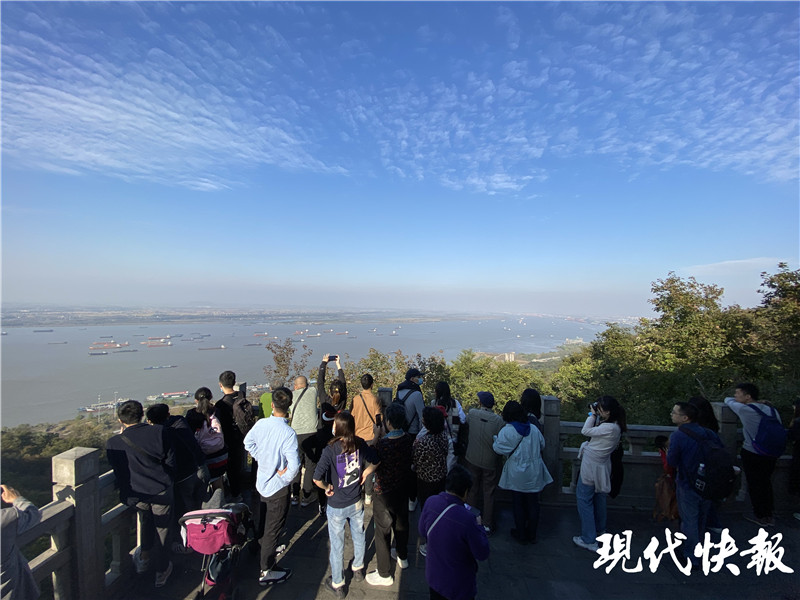 此外,當(dāng)天也是重陽(yáng)佳節(jié),記者在景區(qū)看到,不少老年人趁著早上陽(yáng)光正好,前來景區(qū)登高,他們一口氣登到山頂,在棲霞山的最高點(diǎn)遠(yuǎn)眺長(zhǎng)江。也有一些老人家表示,“除了來登高,還聽說現(xiàn)在棲霞山有一些楓葉開始變色了,趕緊來看看。”