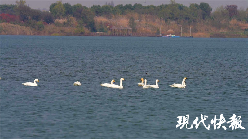 據(jù)園區(qū)監(jiān)測員周宜祥介紹,自10月下旬起,工作人員在赤山湖內(nèi)湖東北側(cè)、南側(cè)等區(qū)域陸續(xù)觀測到小天鵝,最多的時(shí)候有60只,大部分僅停留幾個(gè)小時(shí)到幾十個(gè)小時(shí),待覓食與休整完畢便繼續(xù)向南遷徙。也有少數(shù)幾只自10月末至今一直逗留在赤山湖濕地。專家稱這幾只極有可能選擇在這里越冬,成為首批在赤山湖國家濕地公園越冬的小天鵝。