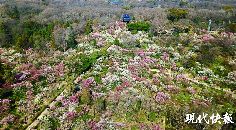 除了梅花,梅花山上眾多早春花木也次第開放,逐步進入最佳觀賞期。櫻花、玉蘭花、二月蘭也都成了市民游客鏡頭里的焦點。