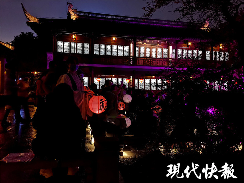 元宵節(jié)自古就有賞花燈、猜燈謎、迎月的傳統(tǒng),為了更好地呈現(xiàn)濃厚的節(jié)日氛圍,夜瞻園內(nèi)還打造了一場提燈游園會?,F(xiàn)代快報記者看到有不少游客提著花燈游園,恍惚間讓人以為穿越到了畫里。