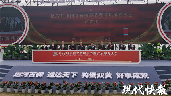 (通訊員 郵宣 記者 韓秋 顧瀟 文/攝)4月16日上午,在風光旖旎的高郵湖畔,第十七屆中國雙黃鴨蛋節(jié)暨首屆郵商大會在高郵開幕,200余名高郵籍院士、專家、學者、企業(yè)家代表以及客商代表出席開幕式。在大會上,正式簽約項目達55個,總投資折合人民幣403億元。