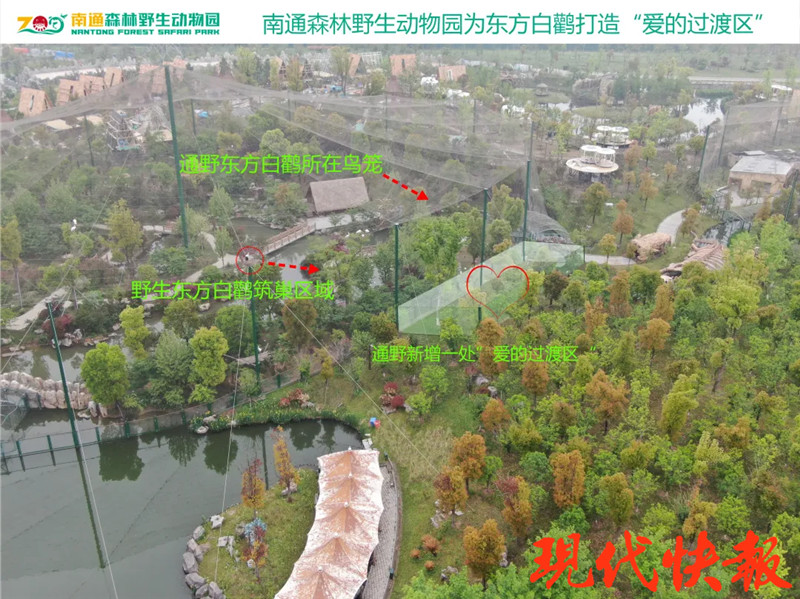 第三步,在確認(rèn)園區(qū)內(nèi)的東方白鸛后,動(dòng)物園將新門(mén)打開(kāi),讓園區(qū)內(nèi)的東方白鸛進(jìn)入愛(ài)的過(guò)渡區(qū),從而讓兩只愛(ài)情鳥(niǎo)相伴;