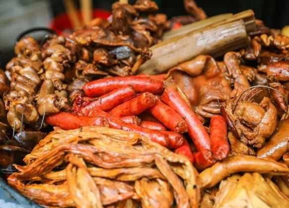 在四川,鹵菜的口感麻辣咸;