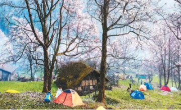 四川省綿陽(yáng)市江油藏王寨的辛夷花競(jìng)相綻放,吸引了不少徒步愛好者前來(lái)露營(yíng)賞花。艾加憲攝(人民圖片)