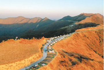 朝霞中的陜西省平利縣正陽(yáng)草甸巴山一號(hào)露營(yíng)地。新華社記者 陶 明攝