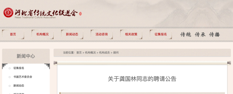 近日,因河北省傳統(tǒng)文化促進(jìn)會(huì)工作和發(fā)展需要,經(jīng)協(xié)會(huì)研究決定,特聘請(qǐng)龔國(guó)林同志為本會(huì)高級(jí)新聞?lì)檰?wèn)。