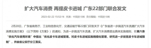 同時,皮卡政策利好消息頻傳。此前,廣東省22部門印發(fā)關(guān)于《廣東省進(jìn)一步搞活汽車流通擴(kuò)大汽車消費(fèi)實(shí)施方案》的通知,提出“優(yōu)化皮卡車進(jìn)城管理。對皮卡車進(jìn)城實(shí)施精細(xì)化管理,研究進(jìn)一步放寬皮卡車進(jìn)城限制”。福建省漳州市商務(wù)局發(fā)布《2023年汽車促消費(fèi)活動公告》,開展對汽車消費(fèi)為期一月的現(xiàn)金補(bǔ)貼,皮卡車型在列。