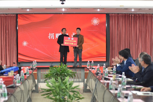 隨后舉行捐贈(zèng)儀式,深圳東方龍大通信有限公司創(chuàng)始人、信號(hào)36班校友周平稻先生現(xiàn)場(chǎng)捐贈(zèng)助學(xué)資金,段俊毅院長(zhǎng)代表通信信號(hào)學(xué)院受贈(zèng),并舉行實(shí)驗(yàn)室共建揭牌儀式。