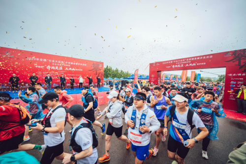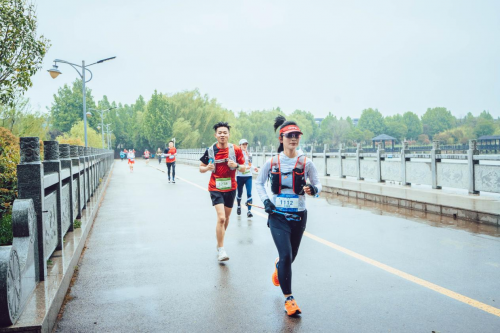 8:58,伴隨洪亮的發(fā)令汽笛聲正式開跑,天空飄落零星小雨并沒影響到500名參賽者激情,從起點賈汪旅游發(fā)展中心出發(fā),經鳳鳴海、大洞山、督公湖等景區(qū),沿途品鑒吉尼斯世界紀錄鳳鳴石、攀登海拔361米彭城第一高峰大洞山、奔跑千年茱萸古寺前、穿行萬畝石榴園間、探尋運動勝地督公湖,最終抵達終點沖線。