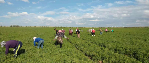 (圖:當(dāng)?shù)剞r(nóng)戶(hù)在黃芪基地務(wù)工)