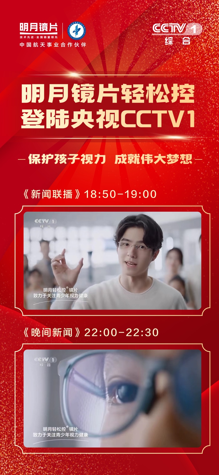 “好視力,好未來!明月輕松控鏡片,關(guān)注青少年視力健康”。8月3日起,明月鏡片輕松控公益片正式亮相CCTV-1《新聞聯(lián)播》、《晚間新聞》等黃金時(shí)段,引起業(yè)內(nèi)外廣泛關(guān)注。