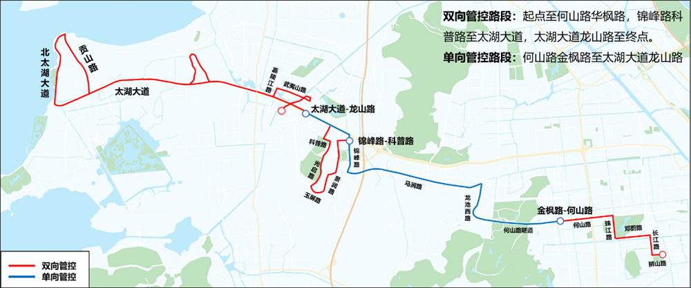 科技城片區(qū)南北向通行車輛可通過松花江路、瀟湘路下穿通道繞行;東西向通行車輛可通過科研路、陽(yáng)山西路繞行至太湖大道;