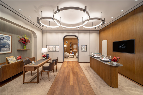 南京德基廣場(chǎng)精品店采用品牌全新設(shè)計(jì)理念,將寶璣經(jīng)典美學(xué)設(shè)計(jì)與現(xiàn)代元素相融合,獨(dú)具匠心,于細(xì)節(jié)之處盡顯品牌高級(jí)審美理念。線條流暢的玻璃展柜內(nèi)與大氣典雅的大理石桌面上時(shí)計(jì)精彩紛呈,彰顯寶璣時(shí)計(jì)獨(dú)到的機(jī)械美學(xué)與精湛制表技藝;店內(nèi)的貴賓專屬空間靜謐幽致,營(yíng)造奢雅私密的時(shí)計(jì)品鑒氛圍,為每一位賓客提供別具一格的尊享體驗(yàn)。