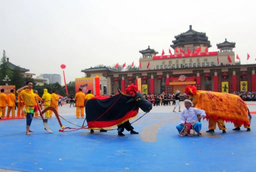 越溪牛燈舞始創(chuàng)于清朝中期,起源于四川內江威遠縣越溪鎮(zhèn)倆母山下。其前身為“牛兒燈”,是一種獨具地方特色的原生態(tài)民間舞蹈,傳神體現(xiàn)出了農耕文化生活。2009年,被省政府命名為省級非物質文化遺產。2010年,“威遠牛燈舞”代表四川入選并參加全國首屆農民藝術節(jié),榮膺最高榮譽獎——精粹獎,道具被中國農業(yè)博物館收藏。越溪牛燈舞不僅有斗牛舞蹈,打做唱念俱全,語言更是匯集了四川土話俚語精華,巧妙運用諧音、謎語、歇后語等手法,令人捧腹開懷。