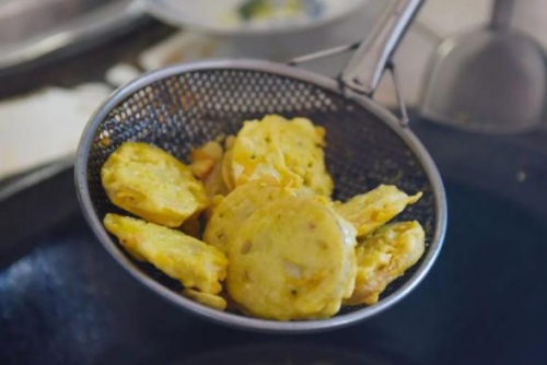 炸藕餅:“藕斷絲連思萬里,鐘靈毓秀遇長江。”從特產蓮藕出發(fā),烹制象征著團圓過年的酥脆油潤的藕餅。